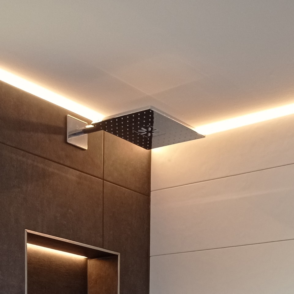 Um Ihre Fliesen ins perfekte Licht zu rücken, installieren wir die gewünschten Systeme, um die Wände und Nischen zu illuminieren.