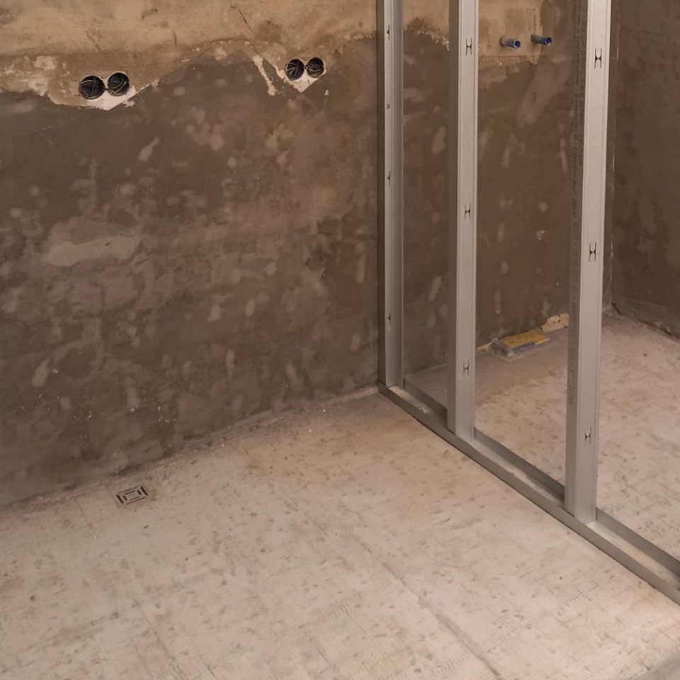 Vorbereitung der Wände um die Fliesen zu verlegen.